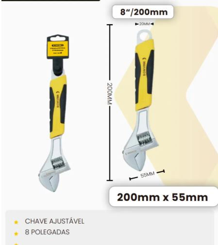 Chave Inglesa 8 Polegadas Chave Ajustável 20cm Reforçada Prateado 5.0